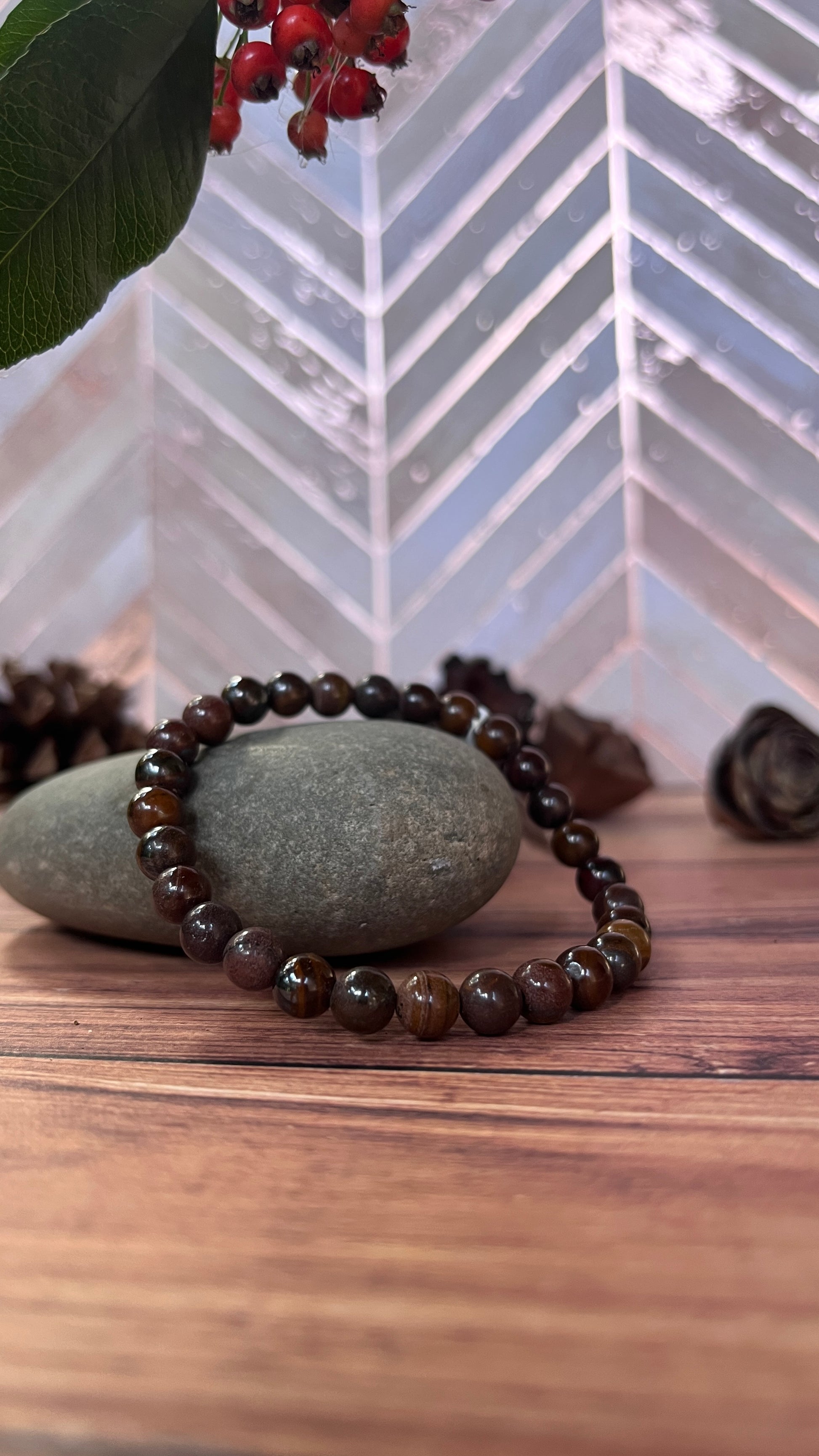 La pierre œil de fer offre un regain d'énergie pour retrouver vitalité et dynamisme. Elle se révèle particulièrement bénéfique pour les sportifs et les personnes affaiblies.